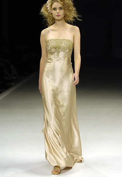 For more details about our sizing visit our sizing guide, and measuring guide pages however most of the gowns have been altered for shows so the sizing is not always to standard and can be dependent on the last model that wore the gown. Many of the gowns in the sale are fuller in the hip and seat area than standard so are often good for pear shaped silhouette, this way they just collapse on the hips due to the soft styling of Gwendolynne. But it can be a bit of pot luck finding a sample sale gown that fits perfectly so bare in mind additional alterations such as hems, straps, etc may need to be accounted for..